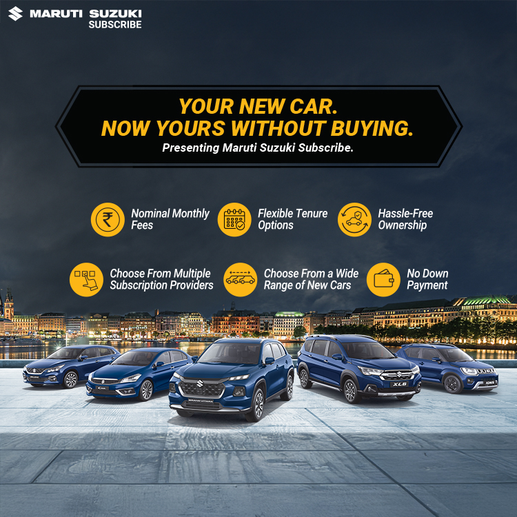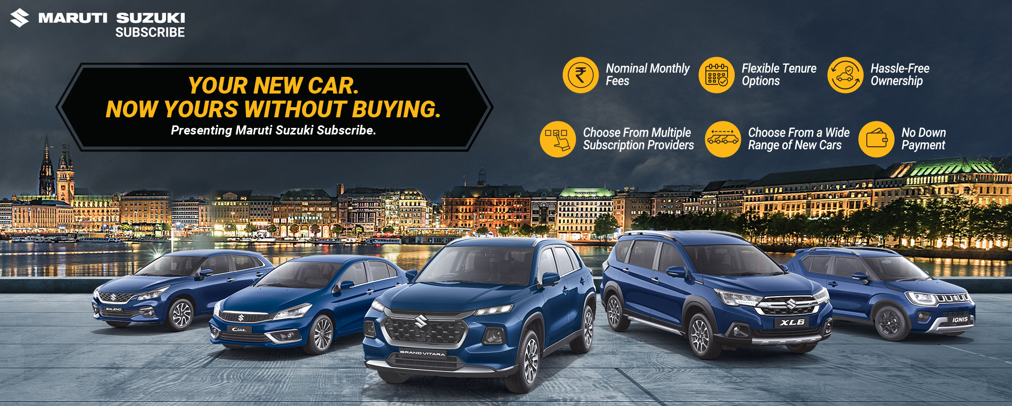 Located in Agartala, Jain Udyog offers a plethora of options of Nexa cars for Maruti Suzuki Subscribe. You can choose your desired Maruti Suzuki car and drive it home at nominal monthly fees for a variety of flexible tenure periods. Whether you prefer Hatchback, Sedan, SUV or even MUV you are sure to find it at Jain Udyog, Arundhuti Nagar with an easy Maruti Suzuki Subscribe plan.
